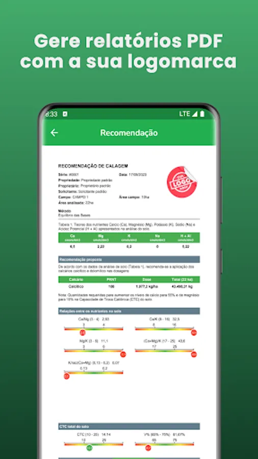 1 - Base Balance: Based on the characteristics of your soil, Liming & Fertilization performs precise calculations to determine the ideal amount of corrector to be applied, considering the correction of the bases and the maintenance of the nutritional balance necessary for healthy plant growth .