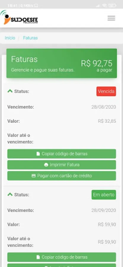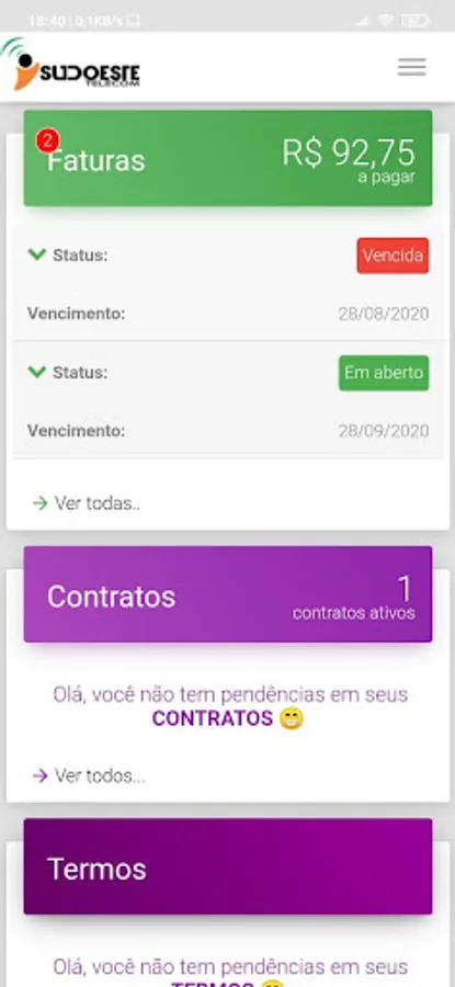 An application for you to consult your invoices and make payments, check your contracts, perform unlock, consult the consumption of your connection all at a click.