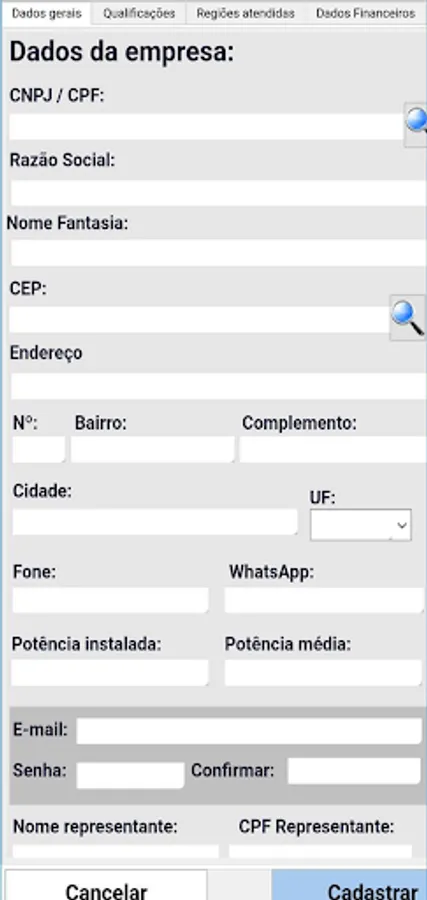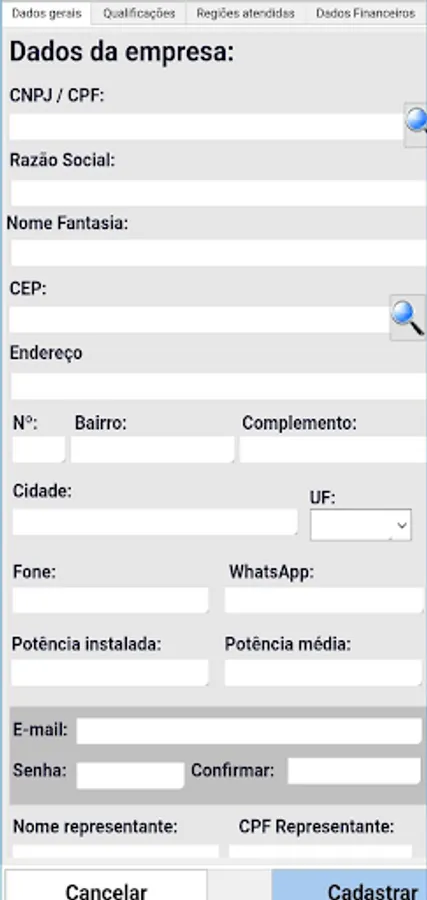INSTALLERS: receive the proposal chosen to perform the installation. They can register their information, such as name, CPF/CNPJ and area of expertise, to receive proposals that are within their zip code range. In addition, it is possible to add information about the portfolio, location of the work, date, kwp value and customer contacts.