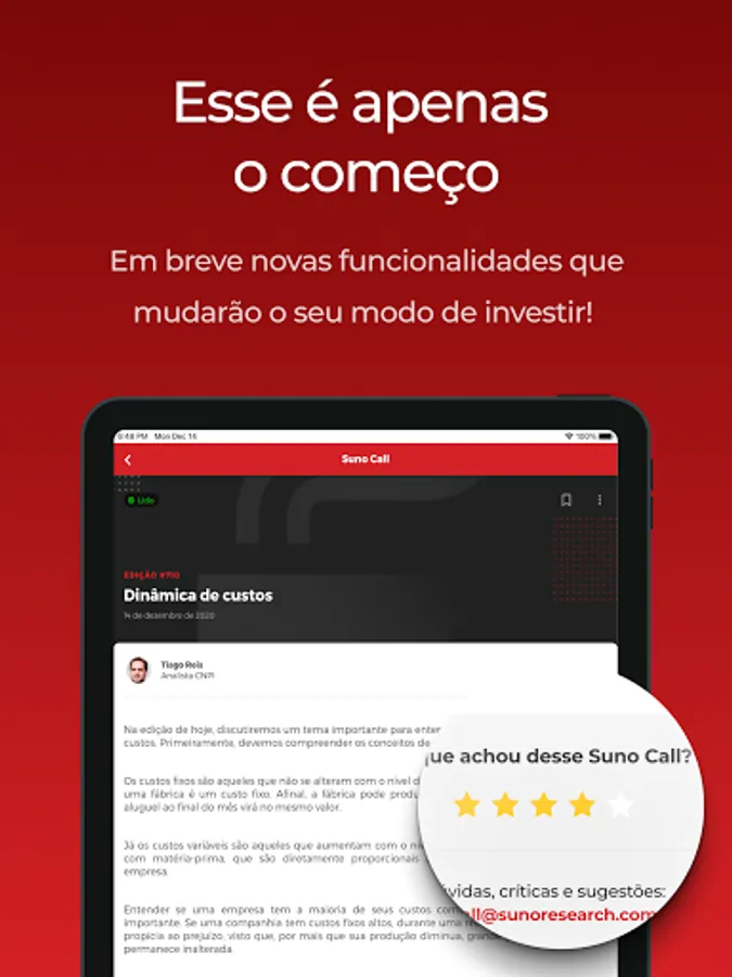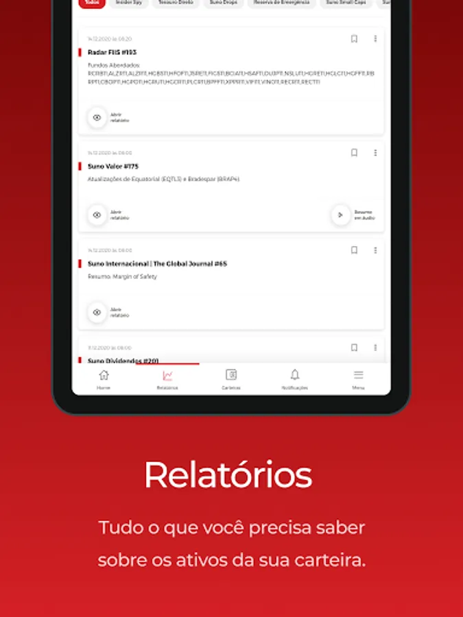 Download the Suno app right now on your mobile phone and enjoy all the benefits of being a subscriber to the largest independent analysis house in Brazil!