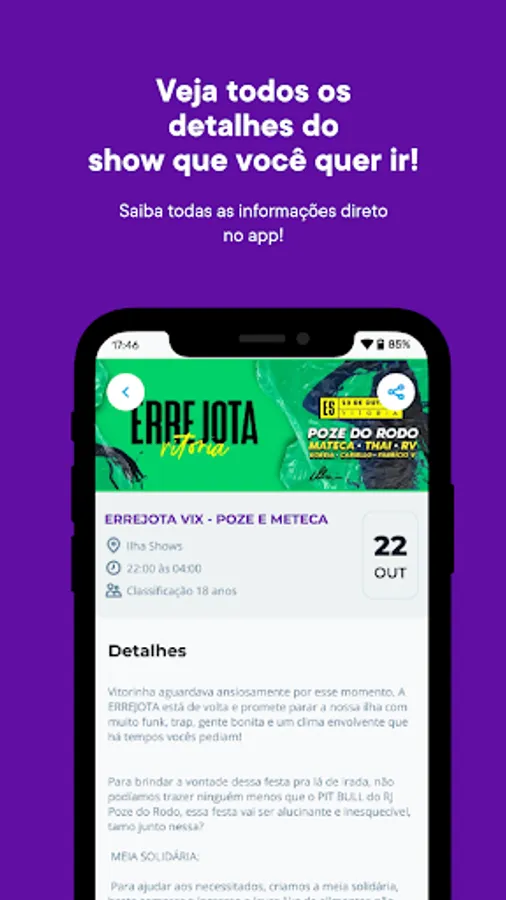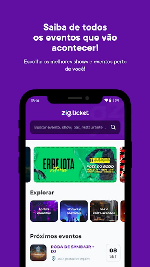 Full description: For you participants, the Zig.tickets app guarantees greater agility, security and ease when buying your tickets for the best shows without having to face queues.