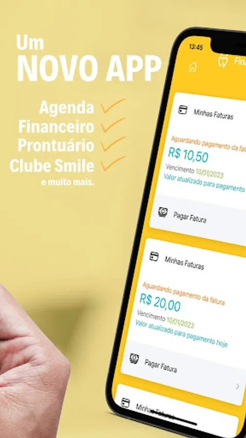 The Hill Odonto Application allows you to easily confirm appointments, pay your monthly fees, access the progress of your treatment and much more.