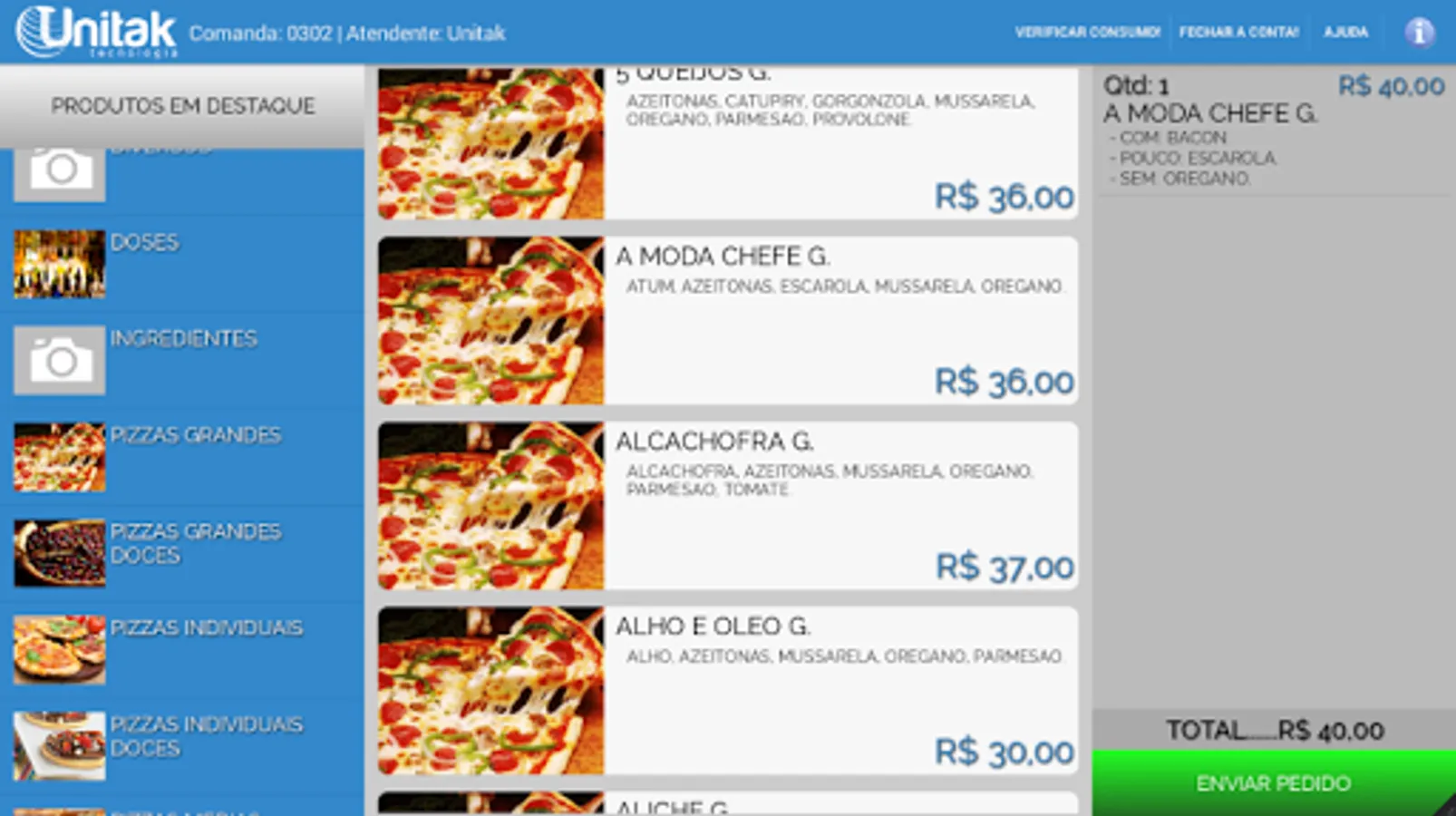 Through this application your customers do not rely on waiter to order your meal, innovating and streamlining the process of care in their establishment.