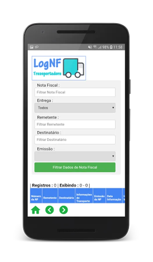 Application for location and verification of invoice status of the LogNF system of the company Mitt Sistemas