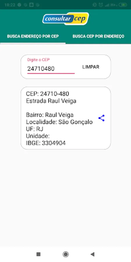 This fantastic APP, it searches the necessary information for who is searching for an address of a CEP.
