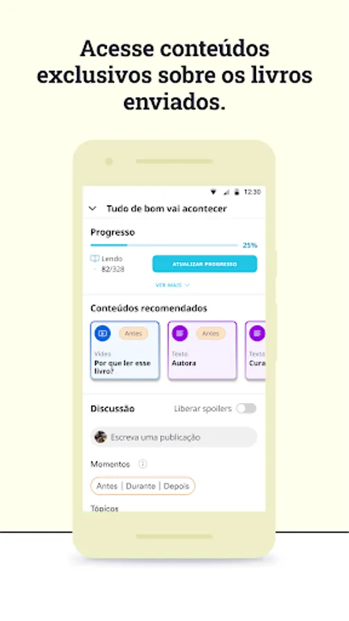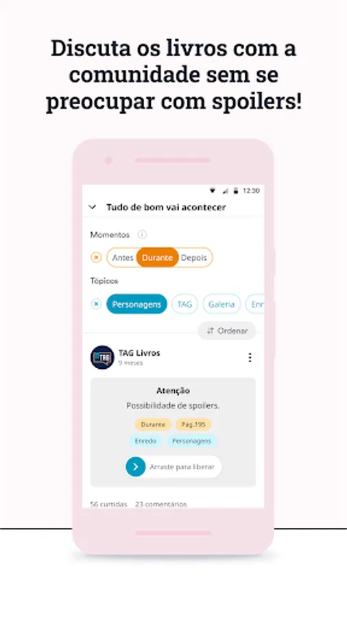While you read TAG's book of the month – Experiences Literary, thousands of other readers do the same – here at the club, there is no danger that, when we finish a reading, we won't have someone to talk to! And to improve interaction between our members, we created a mobile app, a social network where members can get to know each other and discuss each of the projects, further enriching their experience here at the club.