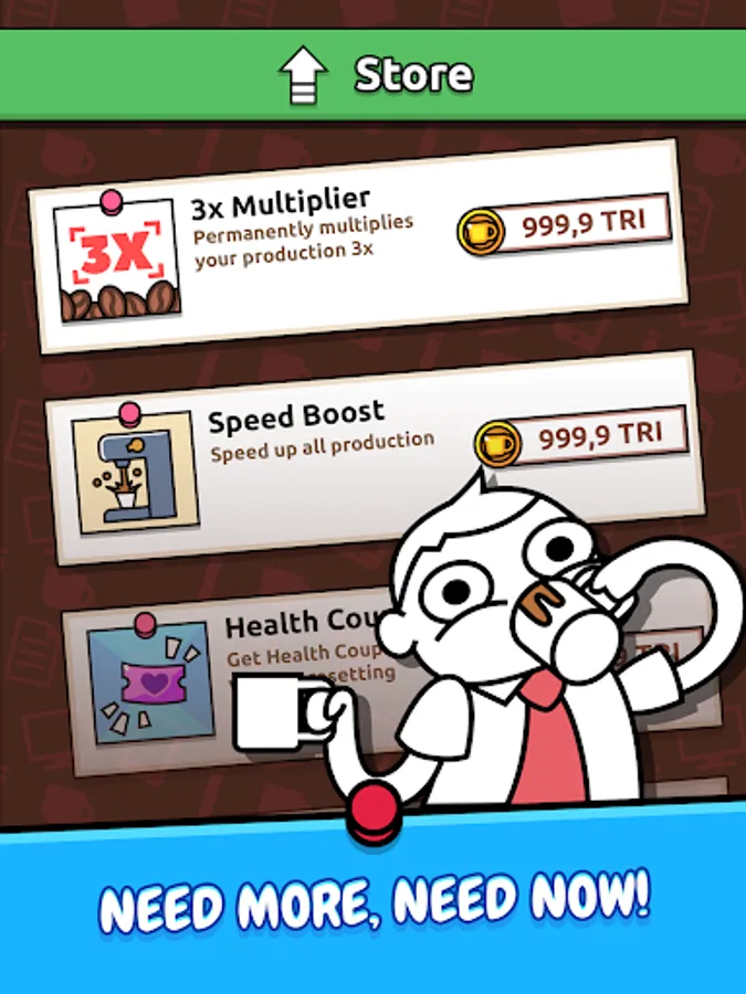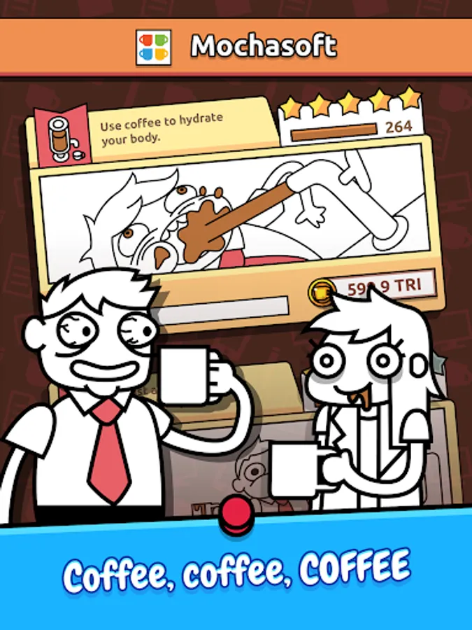 ☕GROW into the ultimate hyperactive, caffeine-rushed overachiever and prove that you need only one thing to upgrade your corporate status: INFINITE COFFEE!