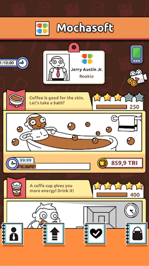 ☕CONQUER not one, not two, but three different companies with your coffee-accelerated skills! Work, work, work, have a cup of coffee, work, work, work, have a bucket of coffee, WORK, WORK, WORK!