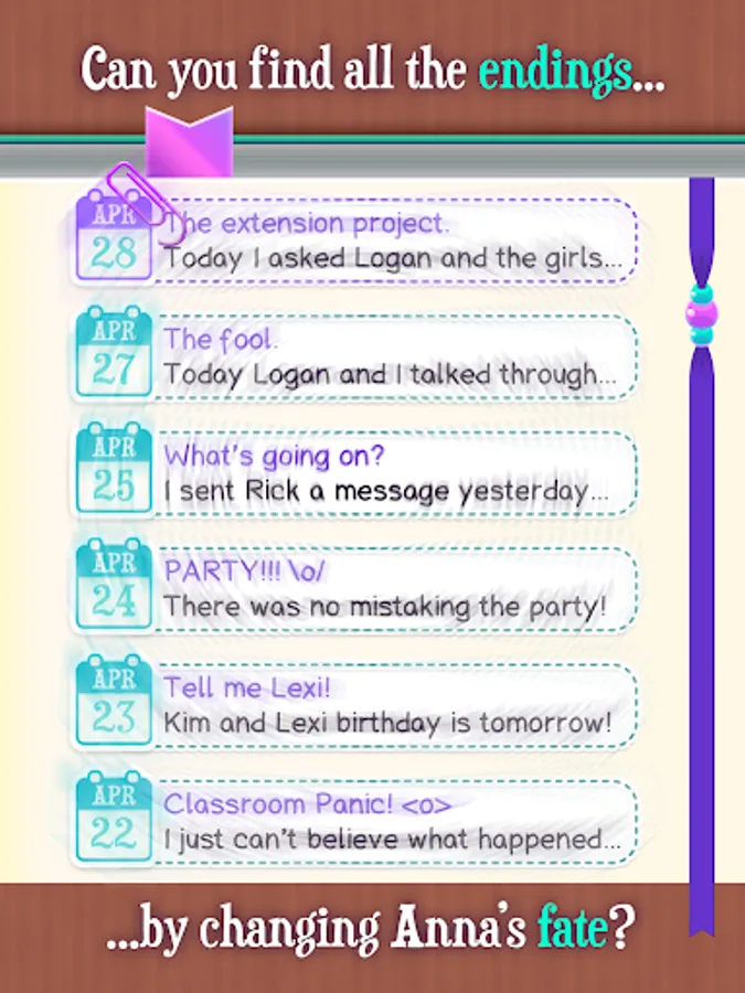 ♥ Don’t worry: when the story ends, you can go back in time and choose differently. Can you discover every possible ending for Anna’s story?