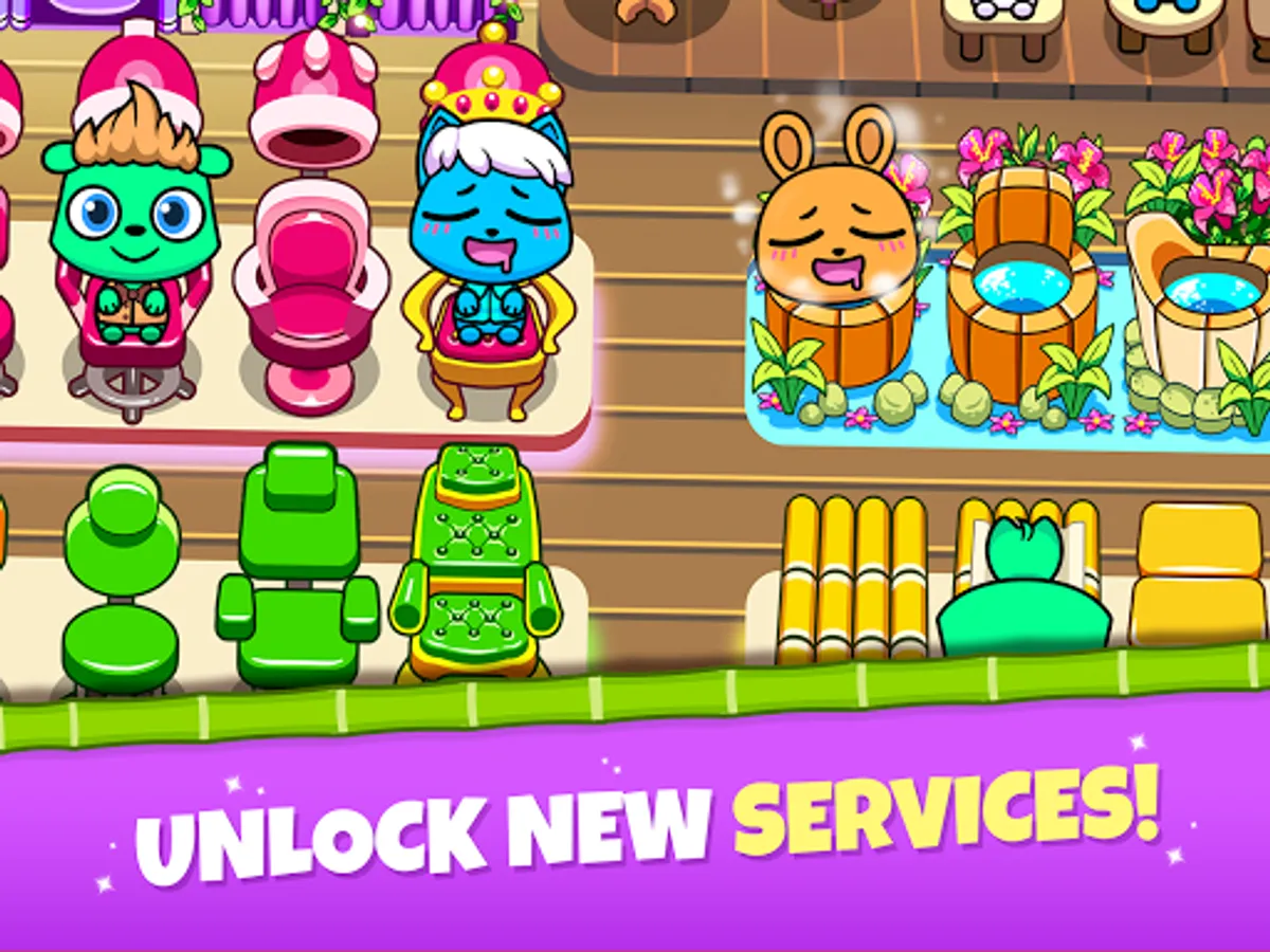 Can you deal with many pets at the same time? Your customers deserve the best: play amazing minigames with them while they chill out. Give them massages, facial and hair treatment and send them to a very nice hot tub bath.