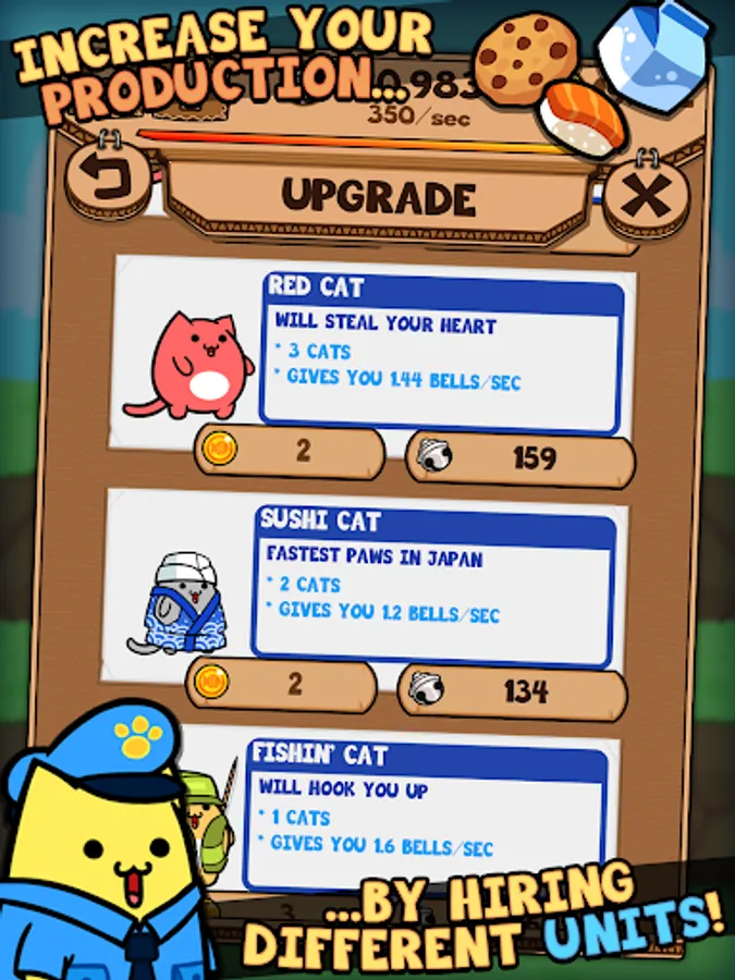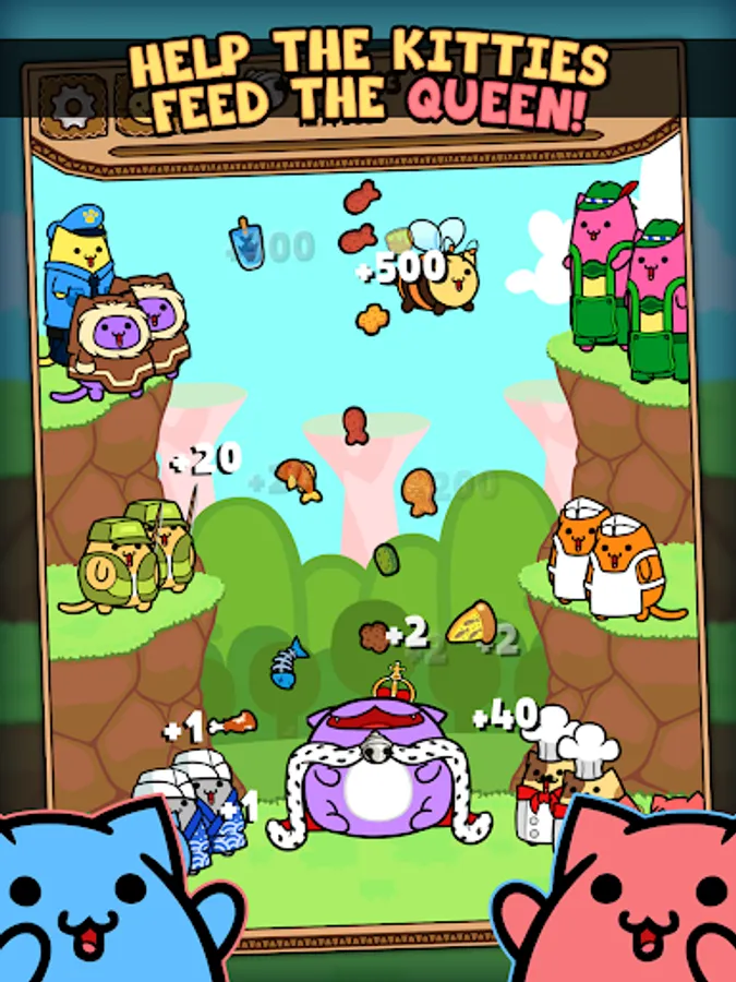 For every piece of food given to the queen, you earn points that can be used to hire new cats.