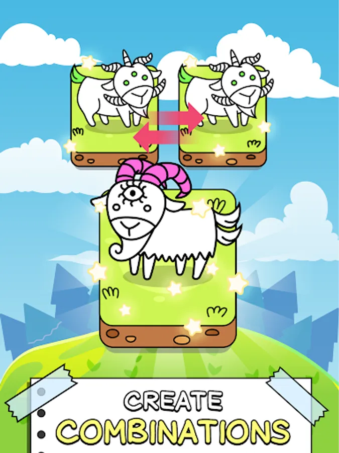 π COMBINE different goats to get new creatures and discover new shapes! Just drag and join to mix and discover more and more!
