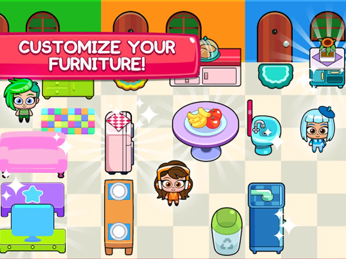 You will learn all the steps in becoming an incredible decorator. From adding a cute sofa to make the living room more cozy, to placing a comfy bed for a nice bedroom and even designing kitchens, bathrooms and gardens. You can also choose wall and floor designs!