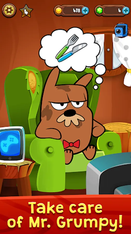 Take care of Mister Grumpy daily, feed him, bathe and put him to sleep! But of course, wake him up in the funniest and most annoying way possible, he'll hate it and tell you to go away! Also have fun remodeling your house and customizing his appearance, putting on hats, ties and many other accessories.
