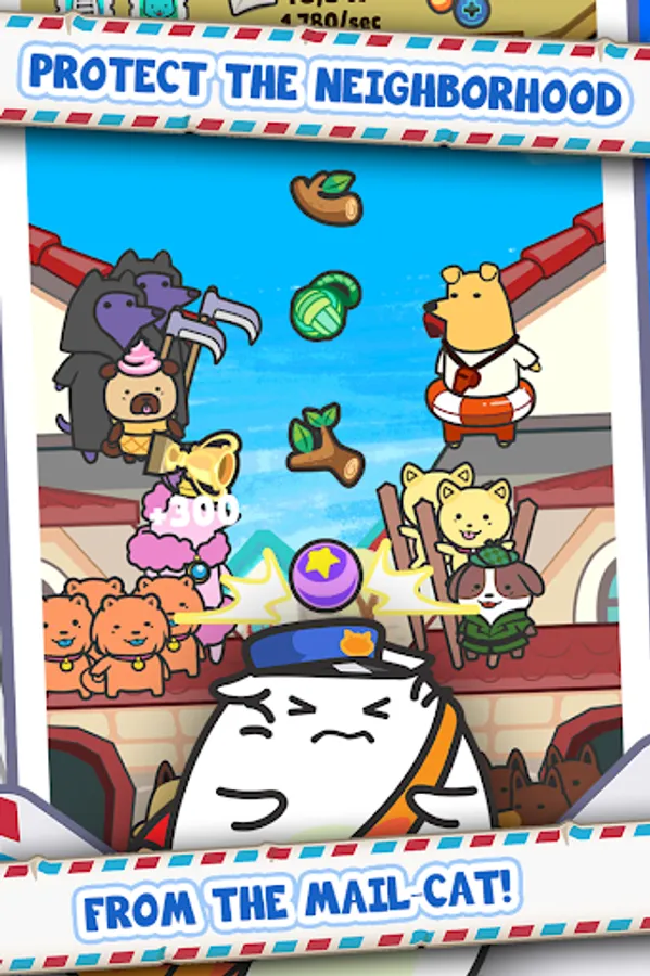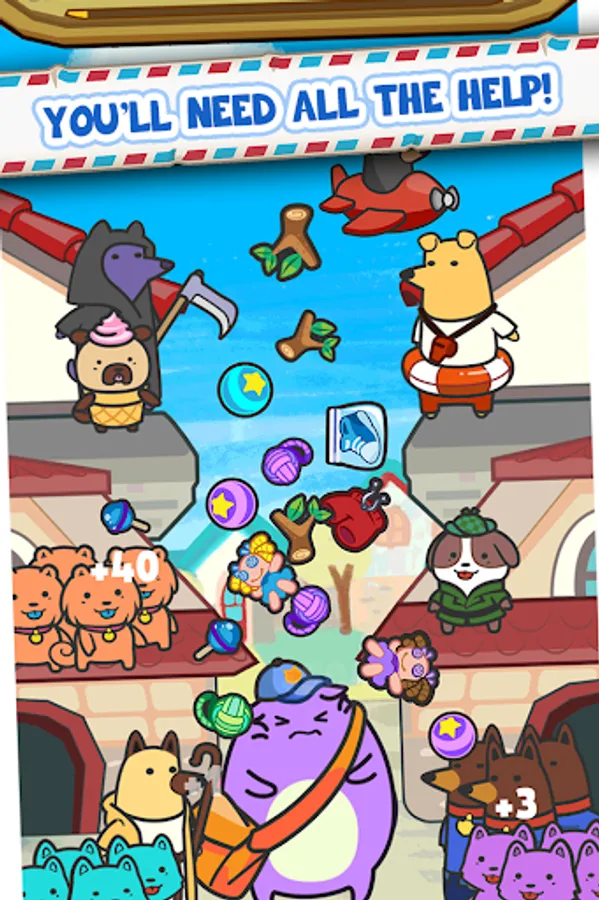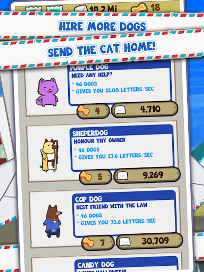 It’s very simple: throw at the cat as many things as you can! You can tap the screen to throw stuff by yourself or hire dozens, hundreds or even thousands of new puppies to help you with this nasty task. For every stuff thrown and barks shot at the cat, you’ll earn points that can be used to hire new dogs.