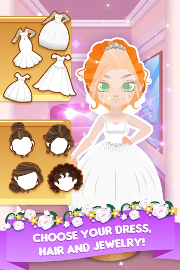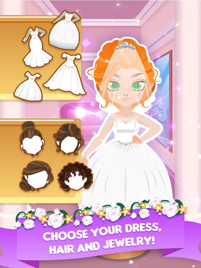 Customize the perfect wedding dress, piece by piece, with tons of customization options and choose a breathtaking hairstyle for the big day!