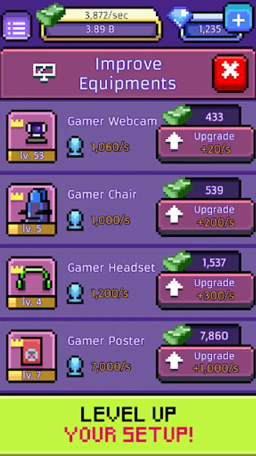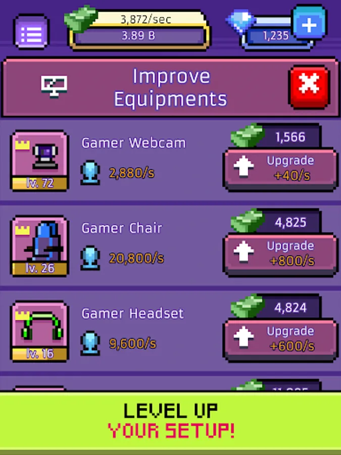 Once you start your pro gamer streaming channel, there’s no going back: your fans will always be twitching for your next broadcast, and they won’t settle for ResidentSleeper worthy videos! You’ll have to deliver the best in idle games and clicker games to please your fandom!