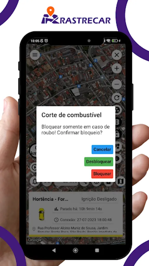 RastreCar is an application connected to a platform that, through GPS and GPRS signals, which are interconnected with systems and a map, informs the exact location of the vehicle and gives you the opportunity to block it in case of theft.