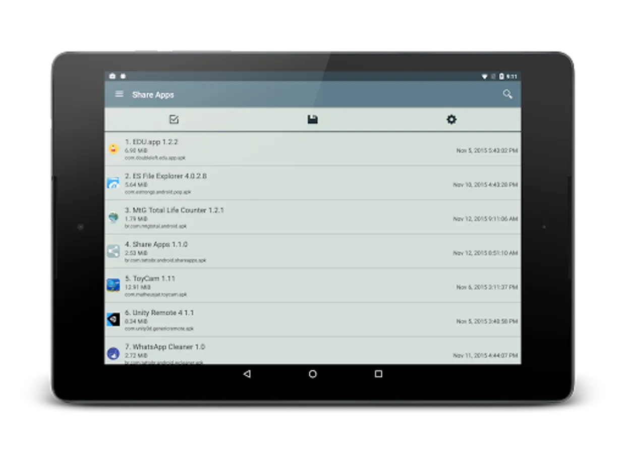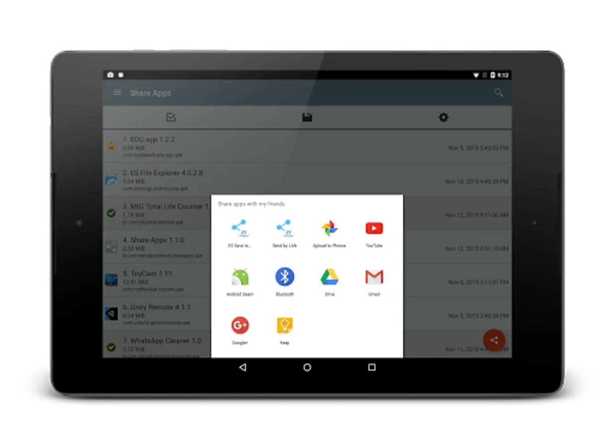 This app allows you to share your installed apps with friends or backup your apps on sd card.