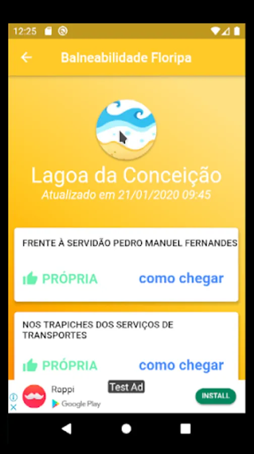 Bathing Floripa is an app for you do not miss a beach, but you want to stay on top of the water quality before you take that plunge. Here you will find the latest information on the state of water in your favorite beach or the beach you want to meet, including maps of the locations and shipping routes. Download the app Floripa bathing and good beach.