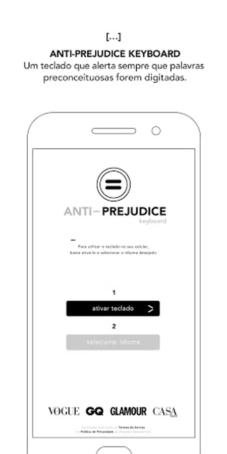 Anti Prejudice is a Globo Condé Nast keyboard for the Android system that identifies hundreds of prejudiced words and suggests more appropriate synonyms every time one of these words is typed.
