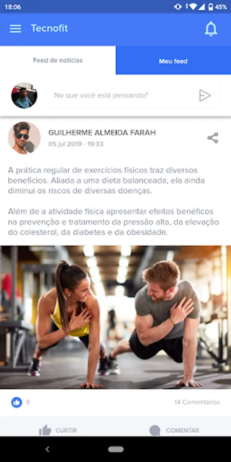 Through the Tecnofit app, students can interact with their network through the timeline of their fitness training center, access their exercise sheet with load evolution history, follow their physical assessments and check-in to classes. All this in the palm of your hand to make your training more dynamic and interactive.