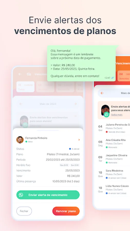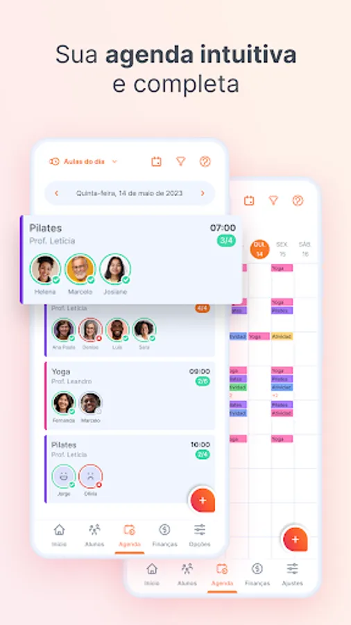 More organization of your Pilates, Yoga, Functional, Pole Dance studio, physiotherapy professionals, dance school, training center, beach tennis classes, footvolley and other sports.