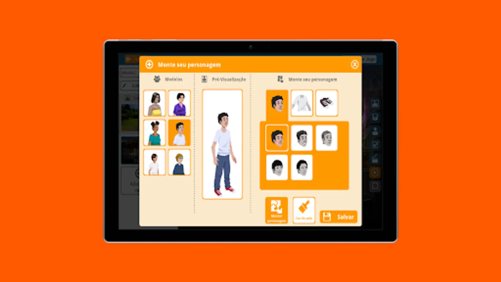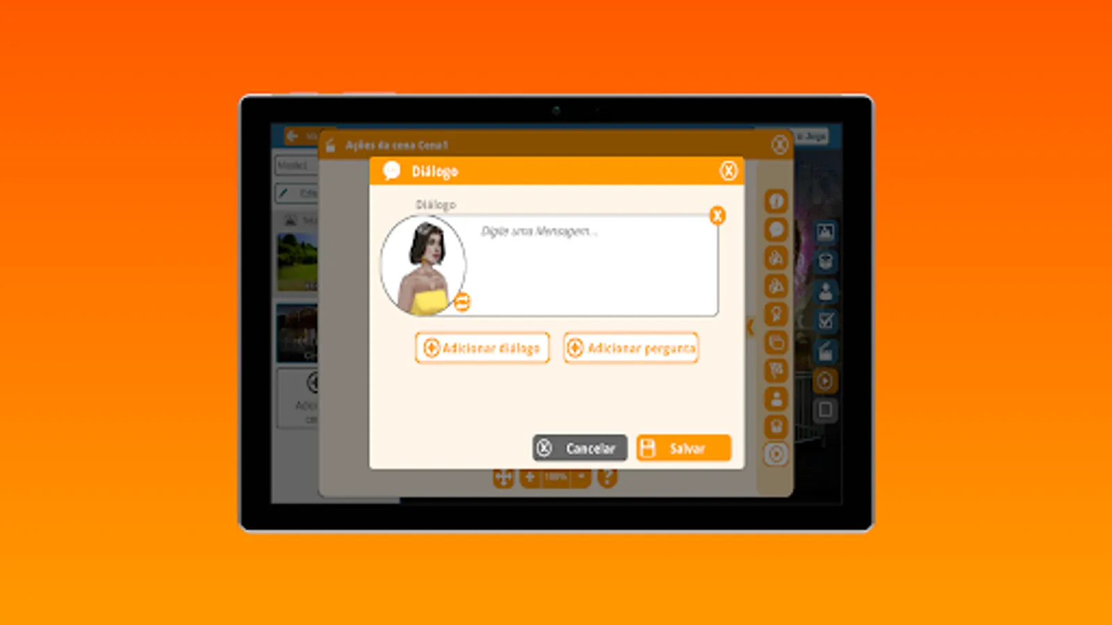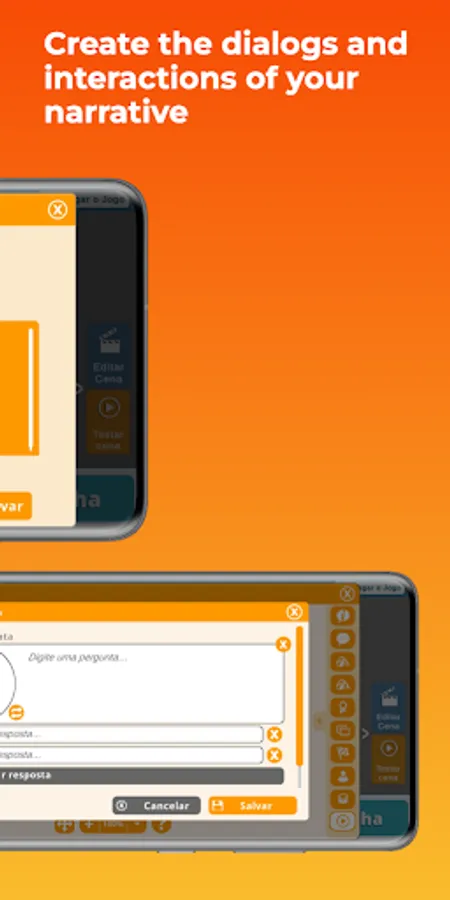 Have all the comfort and freedom to access the features of FazGame's game editor in this complete application. Here you can create your own characters, add objects and scenarios to your game, in addition to building dialogues and interactions based on your narrative and/or learning trail followed.