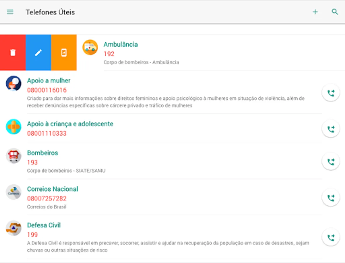 The application is a tool for quick access to the emergency services and other public utility numbers, private numbers and others you wish.