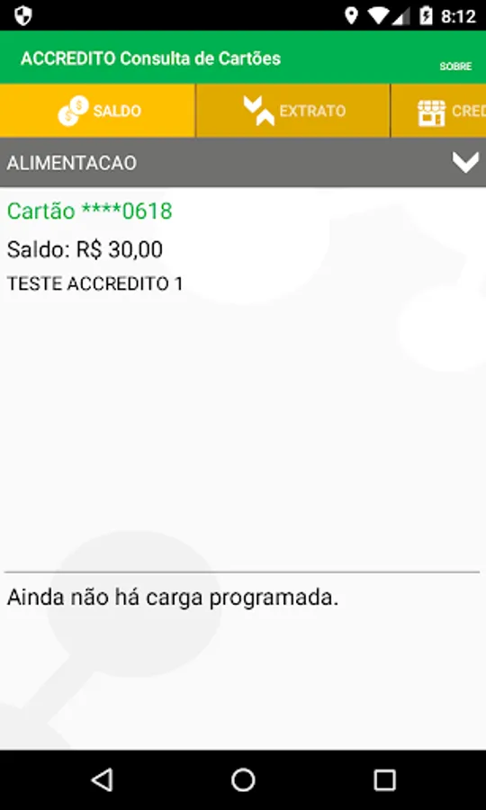 Application for query of balance, extract of movement, consultation to the network accredited ACCREDITO.
