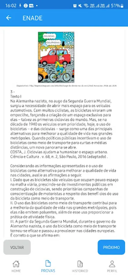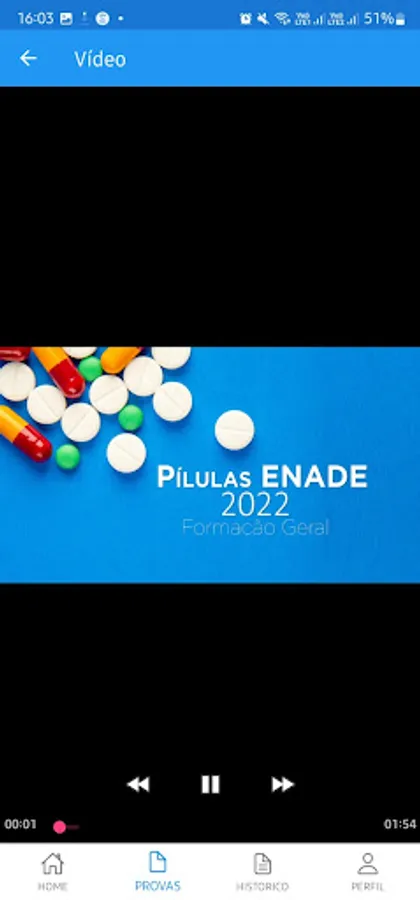 The ENADE Pills application will train you to take the ENADE test, with a bank of questions complemented by video lessons. You choose the test of the year in which you want to train and answer your questions. At the end you can check your feedback, mistakes and successes, in addition to the percentage of hits in relation to other people who solved the same test.