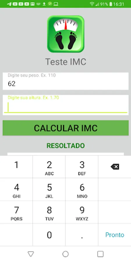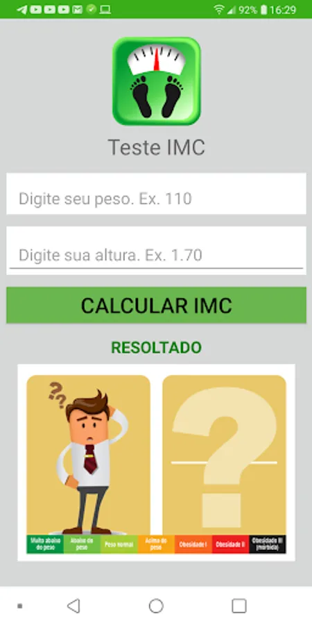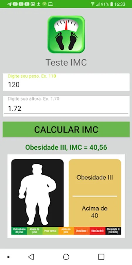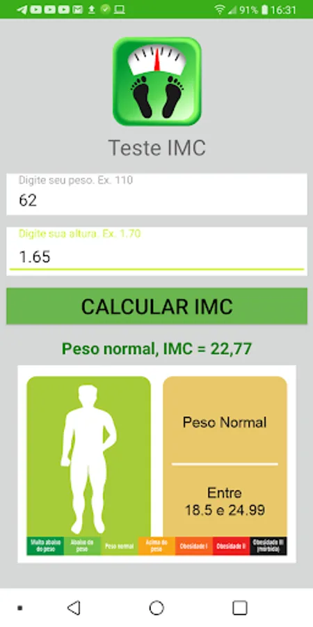 Test BMI Contact is a simple and free application that lets you know your Body Mass Index and the percentage of fat in your body.