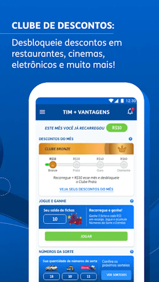 - Discount Club: With each recharge, increase the level of your club and have access to exclusive discounts on various partners!