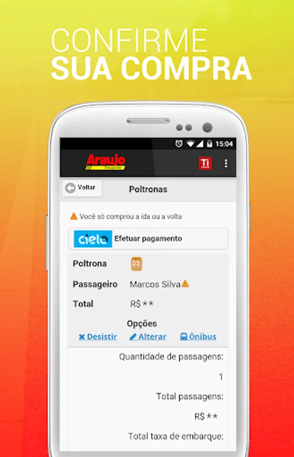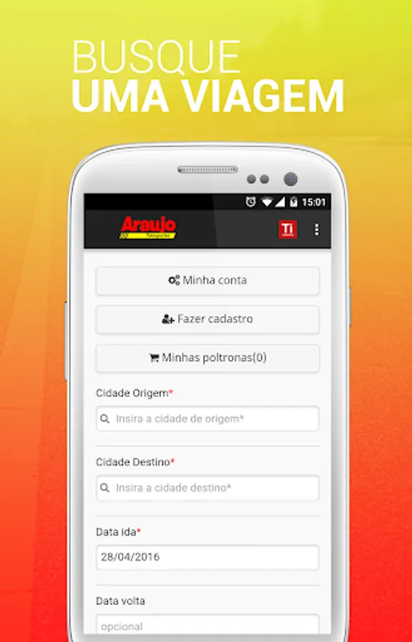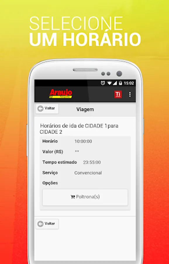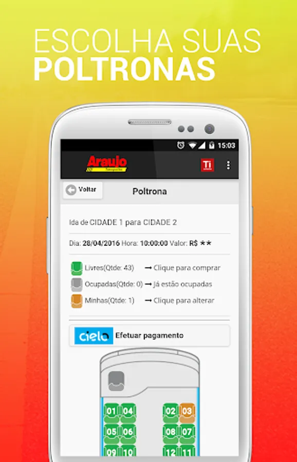 Application to purchase tickets from Araujo Transportes. Buy quickly, conveniently and securely.