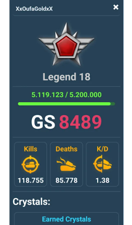 With this application you can search the profile of any Tanki Online player, being able to analyze different player data. This is not an official Tanki Online app, it's just a project carried out by a player.