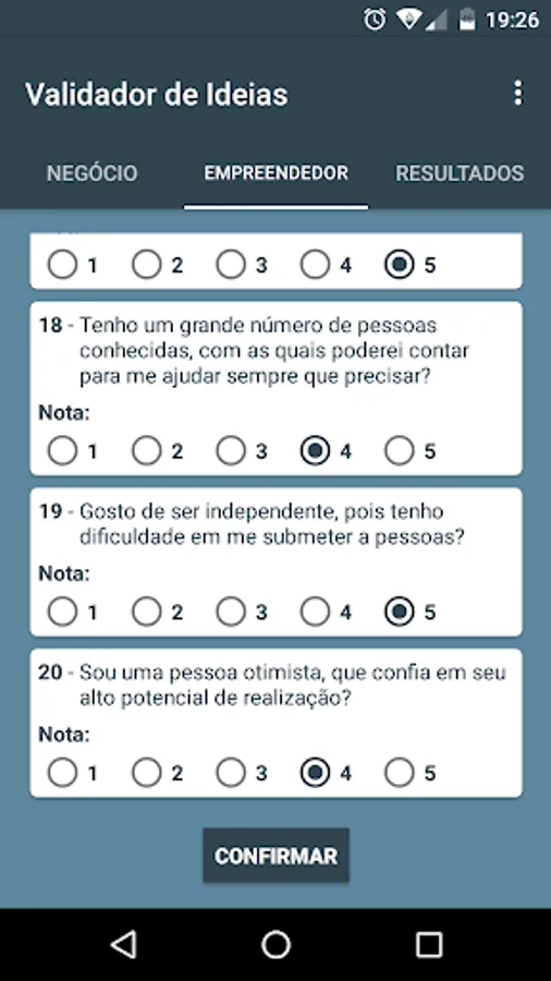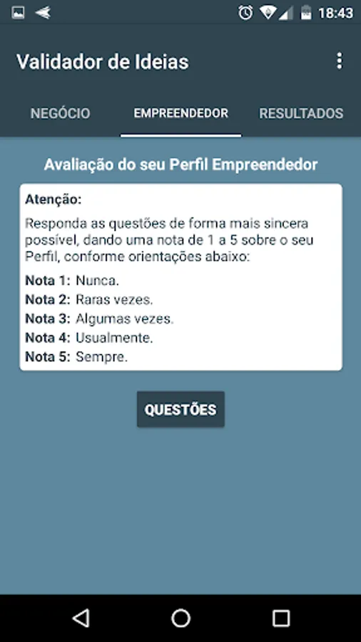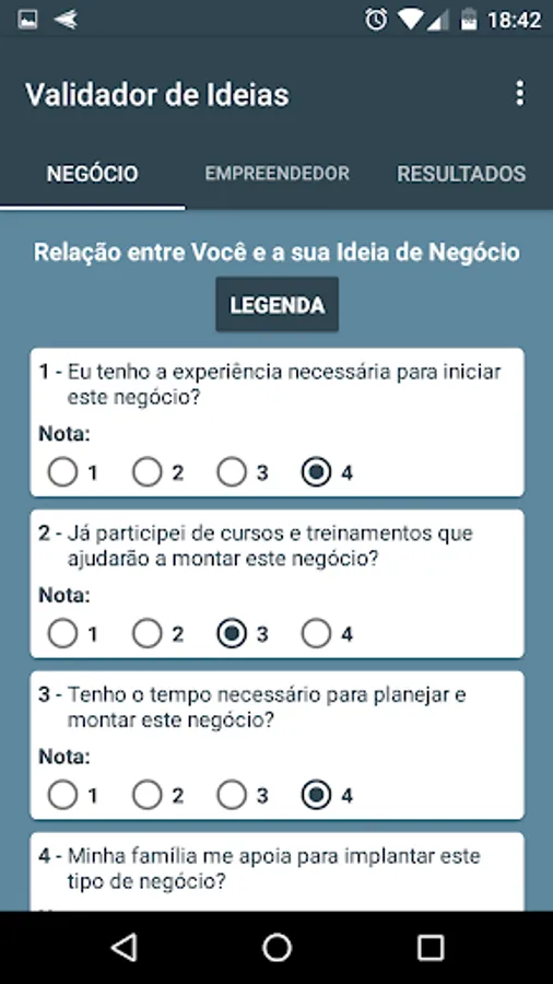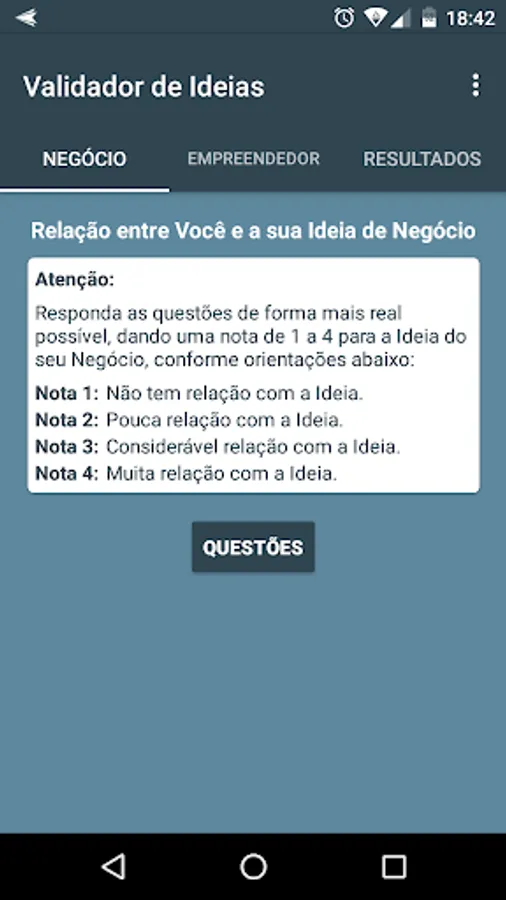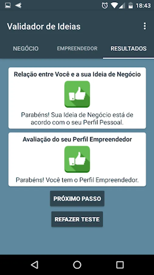 To validate this your Business Idea create questionnaires that will validate your idea according to your personal profile, and if you pass the tests indicate you the next steps.