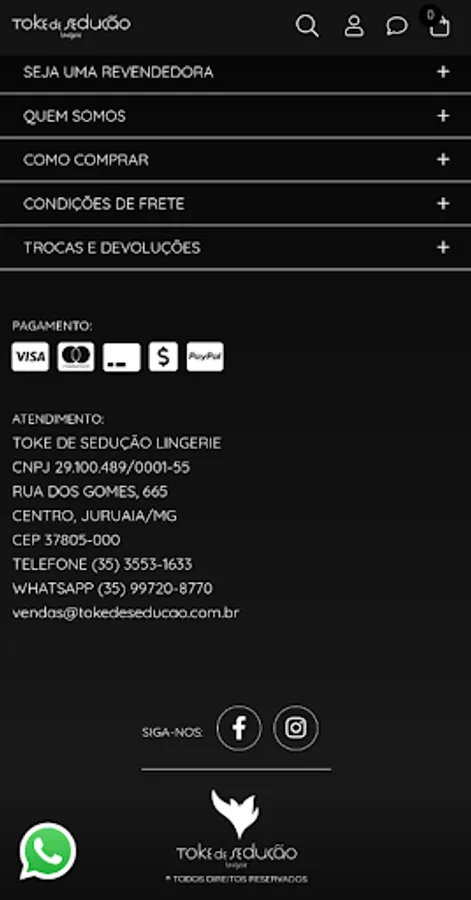 We develop and produce sensual lingerie and with a token of seduction and romanticism. We are in Juruaia, in the lingerie capital of Minas Gerais, with a consistent work of research, innovation in technology with a constant attention to the completion of each piece, which reflects in the high standard of our lingerie and in the loyalty of our customers spread across the 26 Brazilian states for over 9 years!
