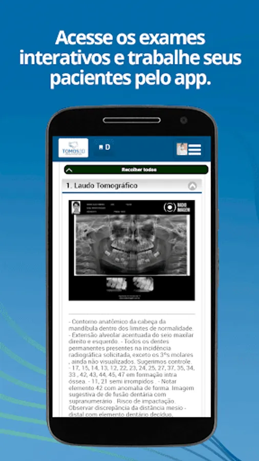 App used by Dentists who request exams of the clinic TOMOS 3D, in which they will see examinations of Dental Radiology