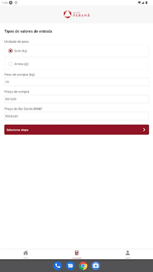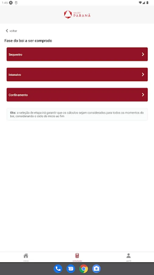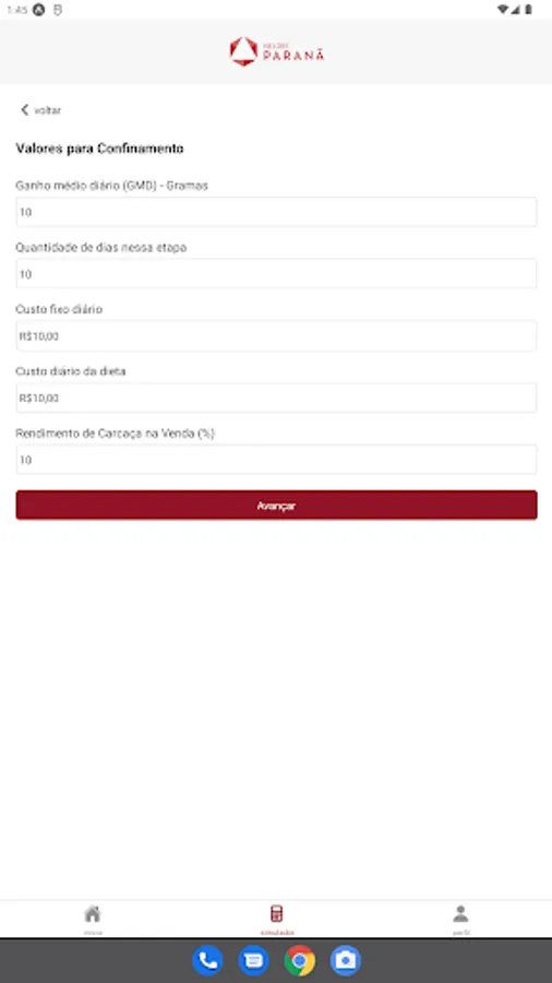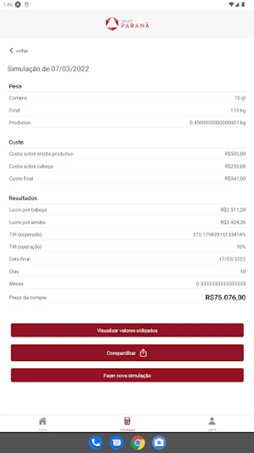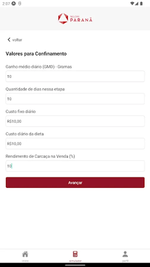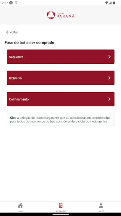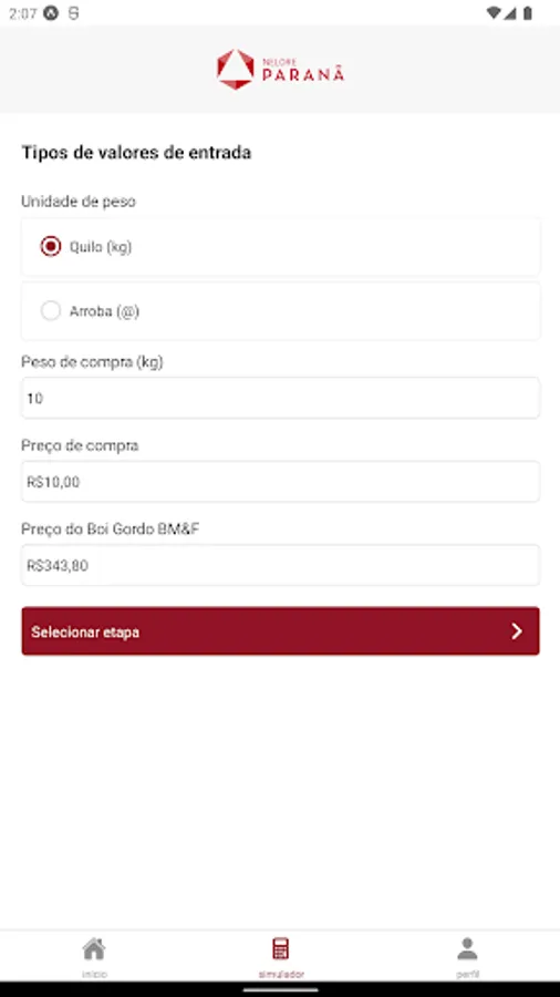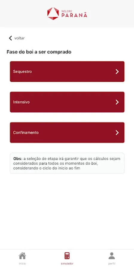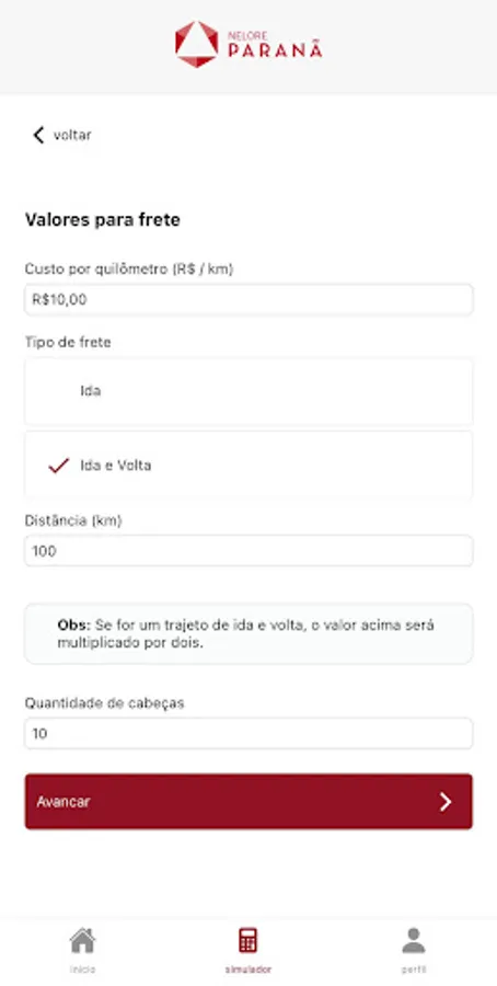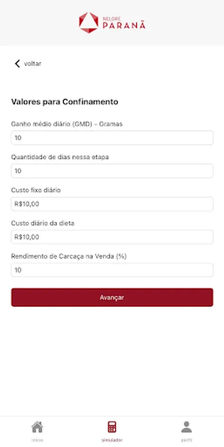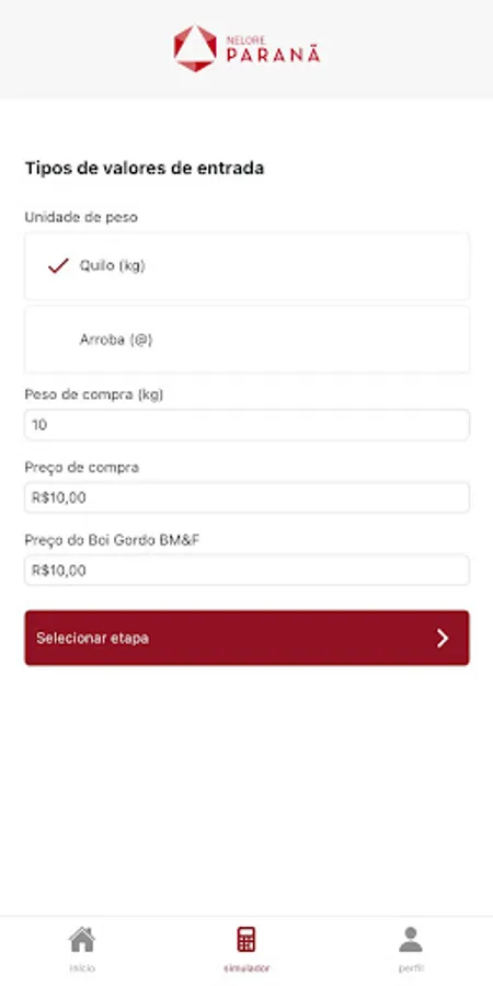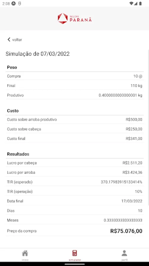 Nelore Paranã price calculations for use by teams during purchasing processes.