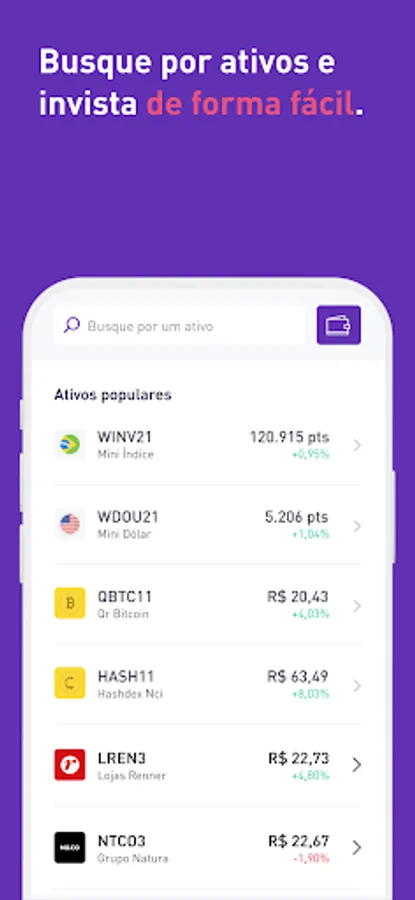 The best way to invest with a complete platform and the credibility of a Santander Brasil company. Make investments in the Stock Exchange, Fixed Income, Investment Funds, BDRs, ETFs and much more without paying brokerage and with the help of specialized professionals.