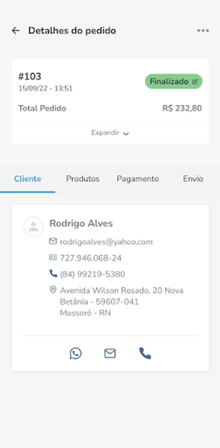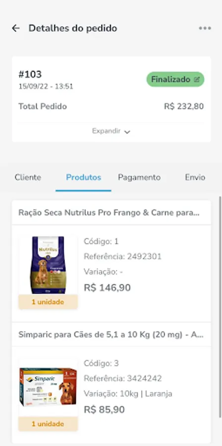 - Change of order status and shipping data