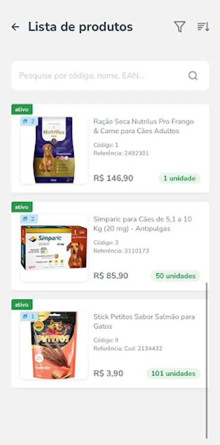 - Product list