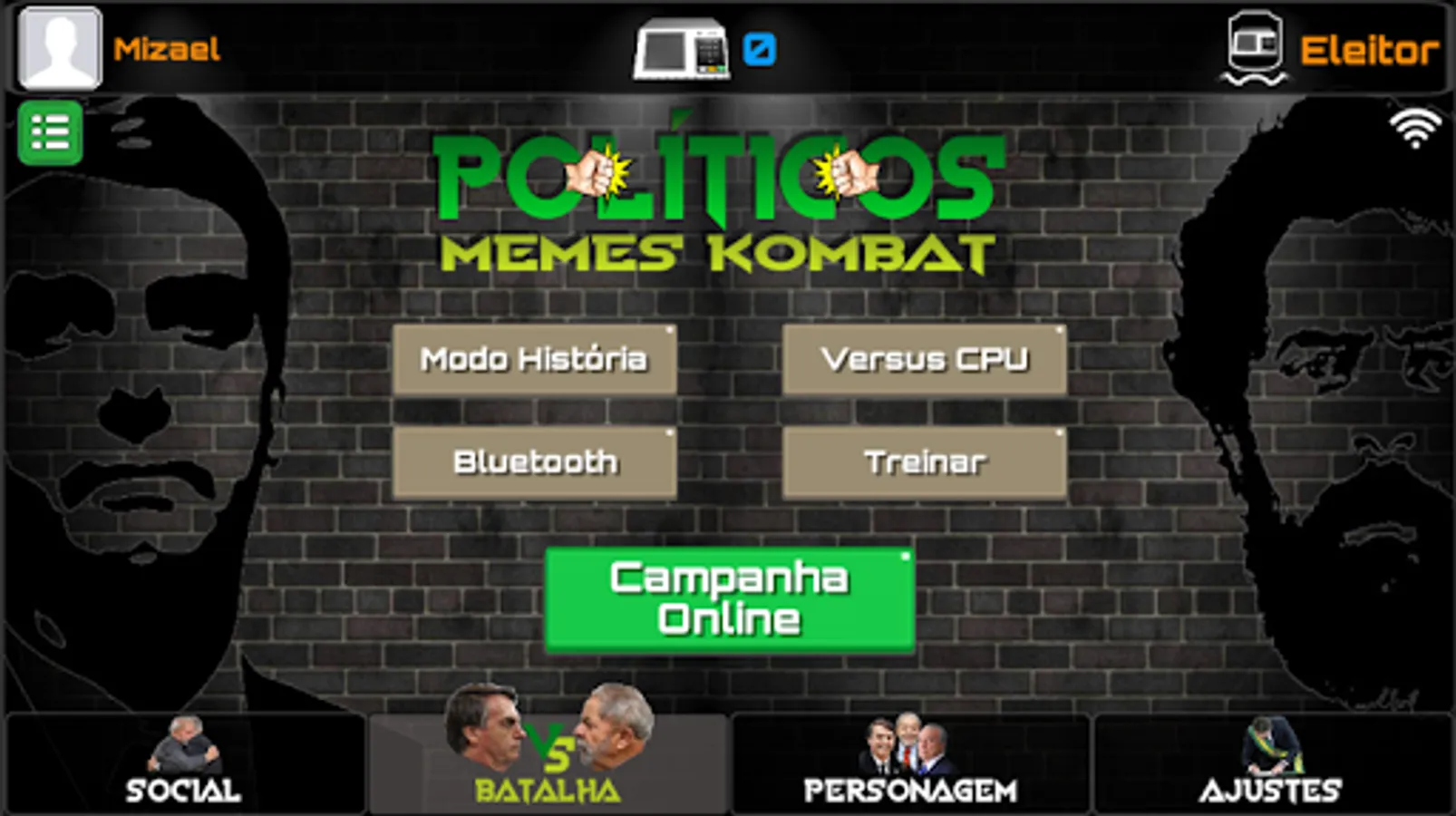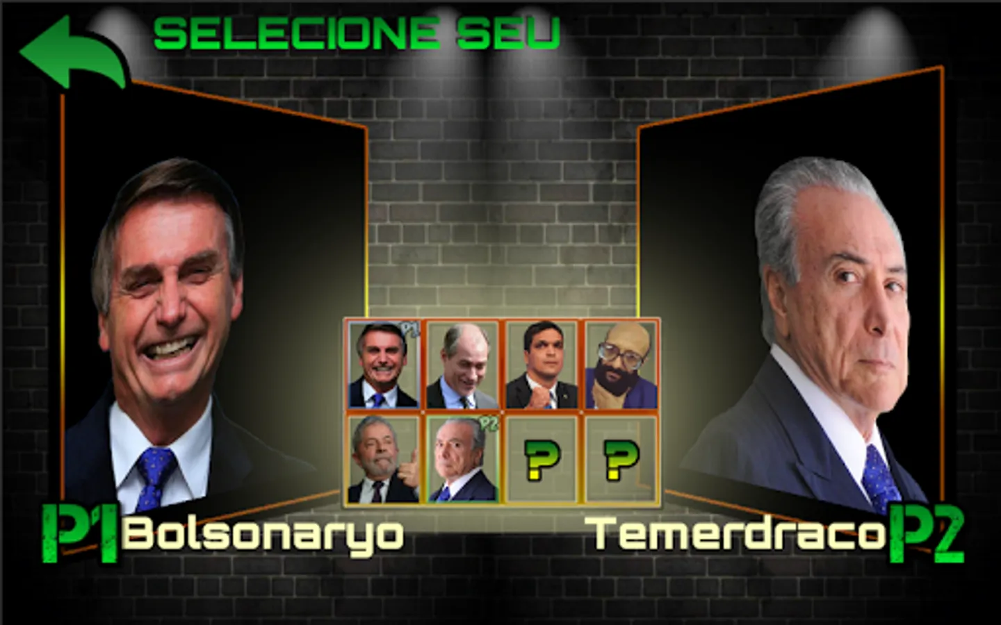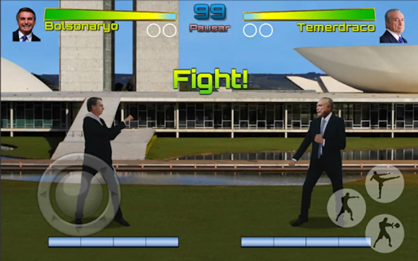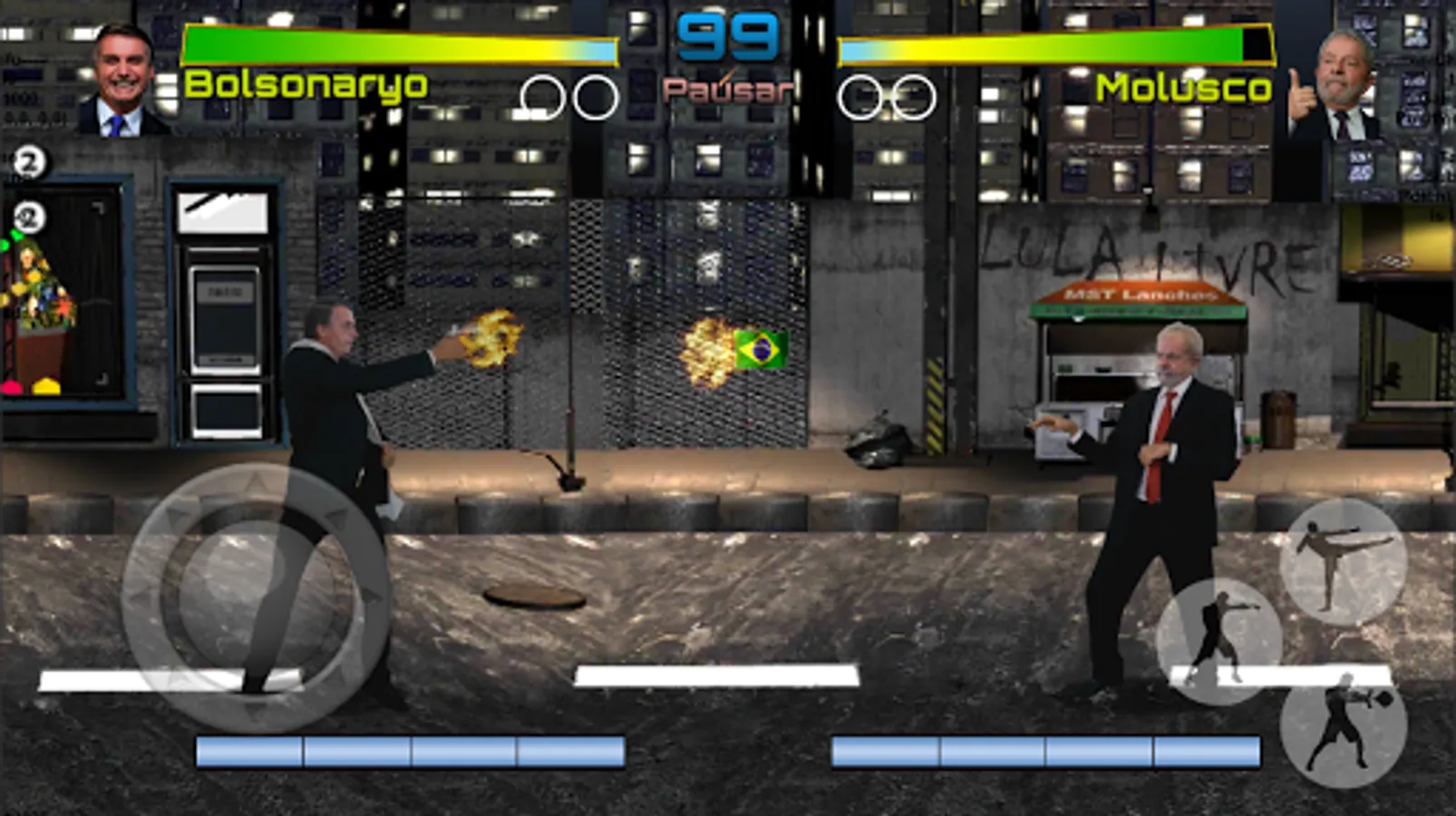 Fight an epic battle in search of votes, anything goes for power. Fighting game of fictional characters based on the Brazilian electoral war. Select one of the characters of Brazilian politics and embark on this fight full of fun and laughter.