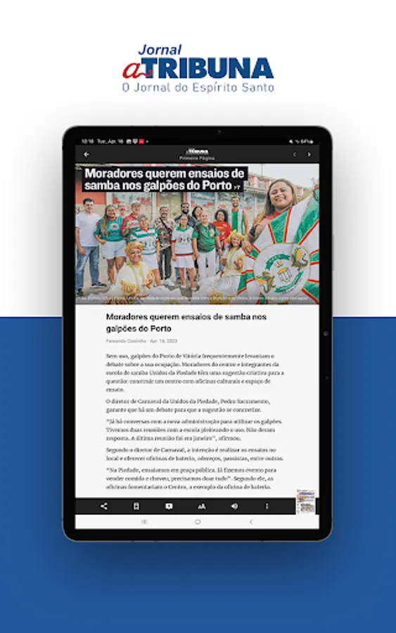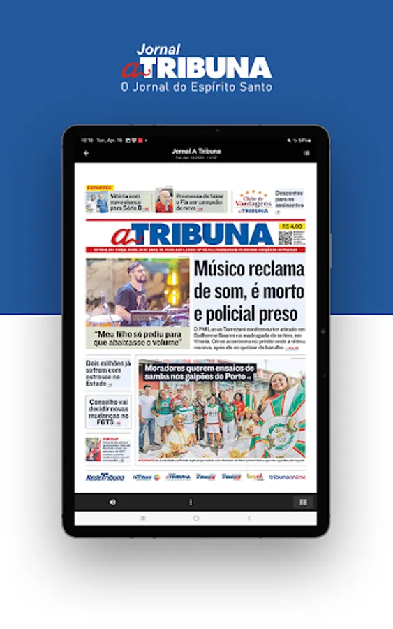 With the A Tribuna application you will access all the content of the printed newspaper, wherever you are. There are more than 40 renowned and respected columnists, in addition to the main news from Espírito Santo, Brazil and the world on Economy, Politics, Police, Culture, Daily Life, Entertainment and Sports.