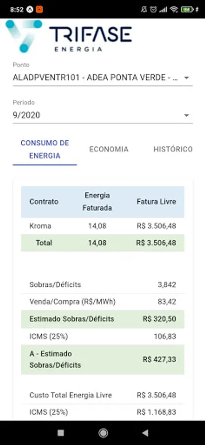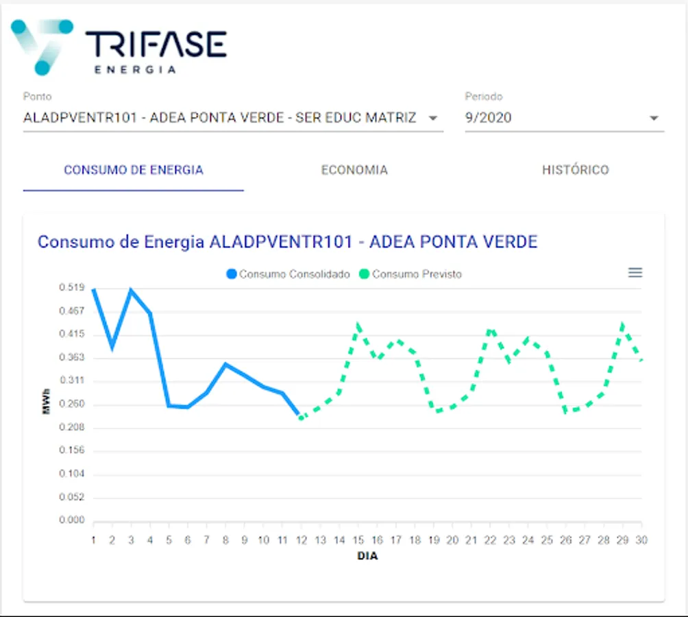 Consultation of three-phase customer consumption, based on CCEE readings