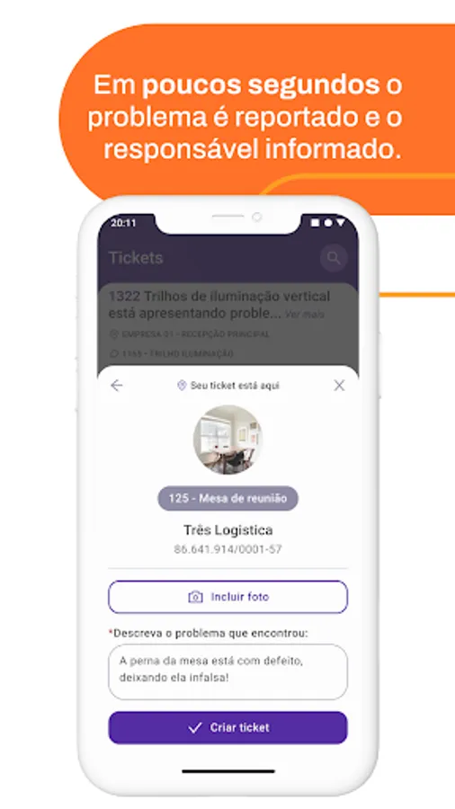 Requests are opened by creating tickets, which can be done quickly using the QR Code of each asset or environment, saving your time, effort and generating accurate information when opening the call.