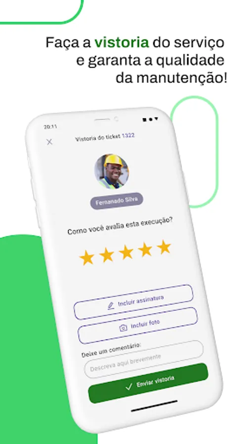 Through the application you can create maintenance calls that will be monitored in real time, in addition to inspecting the resolution of requests, guaranteeing the quality of each service. Fast, easy and practical.