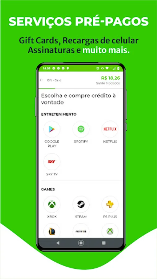 Trocado is for those looking to have access to exclusive financial services, with Trocados you can pay for purchases, make mobile recharges and even buy credits to use on Uber, Ifood, Netflix, Google Play and many others.