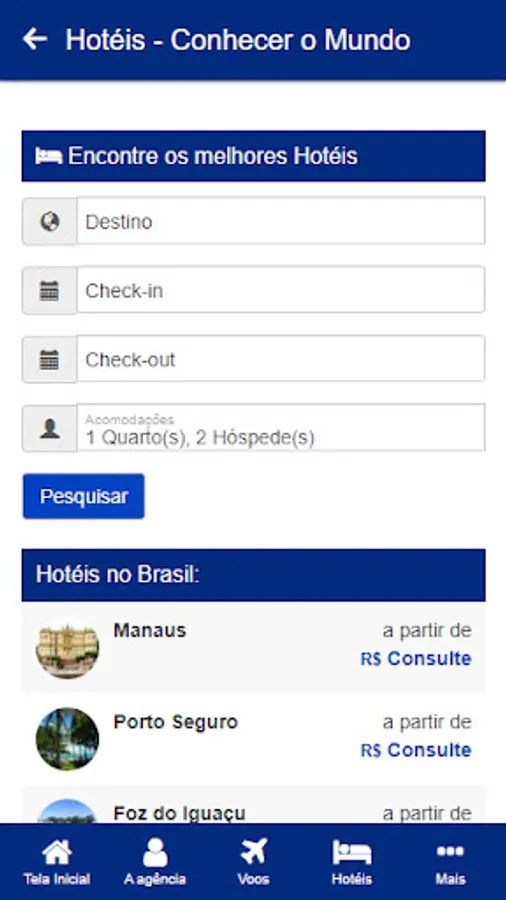 Reservation system and hotel information in Brazil and abroad