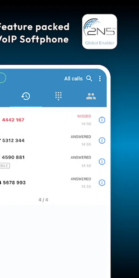- Histórico de chamadas com uma lista de chamadas recebidas, perdidas e discadas